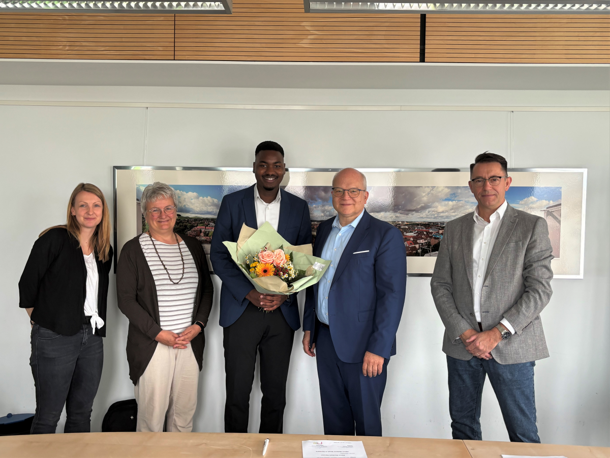 Der Kreis der angehenden Ärztinnen und Ärzte, die über das Medizinstipendium des Landkreises Heilbronn eine Förderung erhalten, bekommt erneut Zuwachs: Am heutigen Donnerstag, 31. Juli, begrüßte Landrat Norbert Heuser mit dem 25-jährigen Nelson Noah II Sankara einen weiteren motivierten und engagierten Medizinstudierenden.